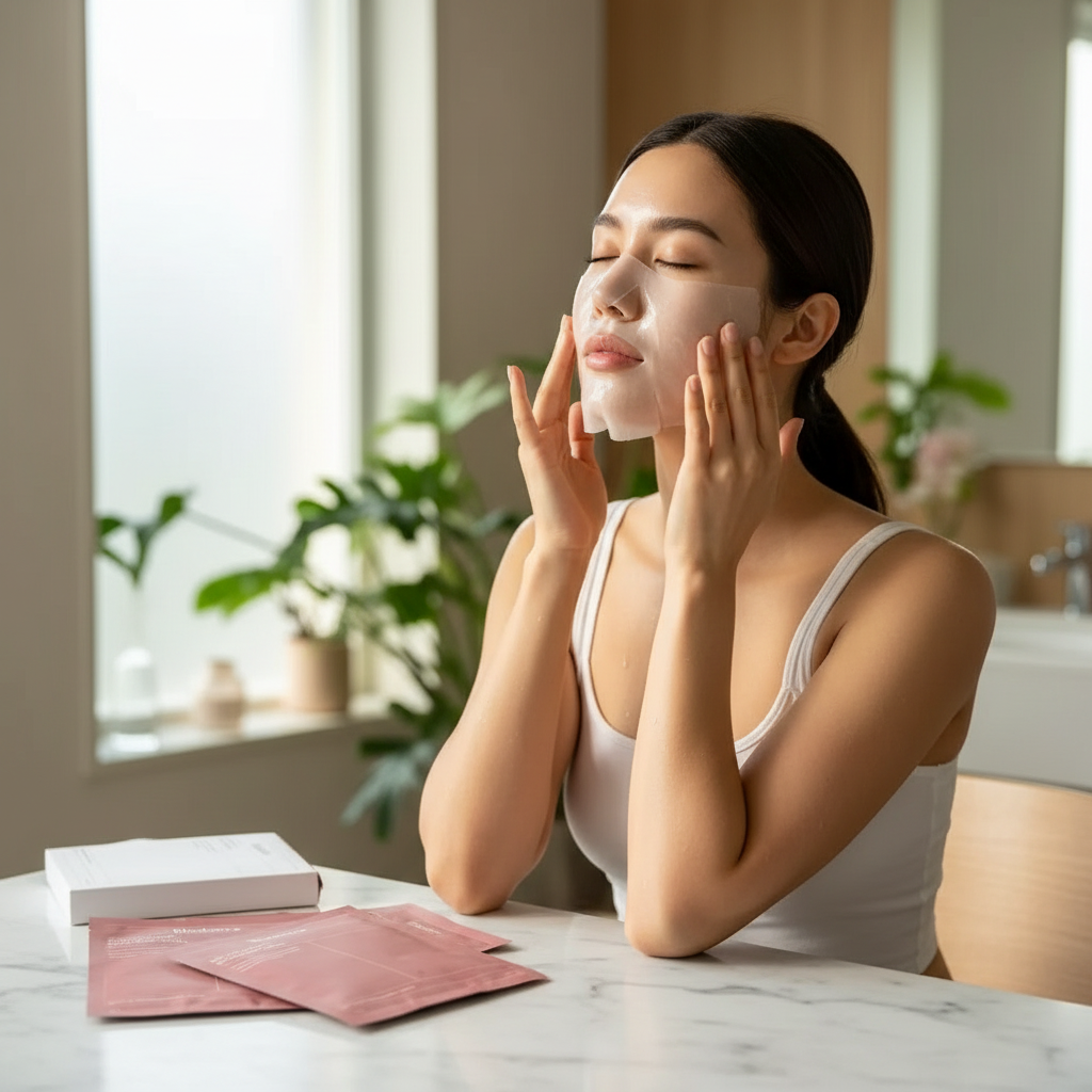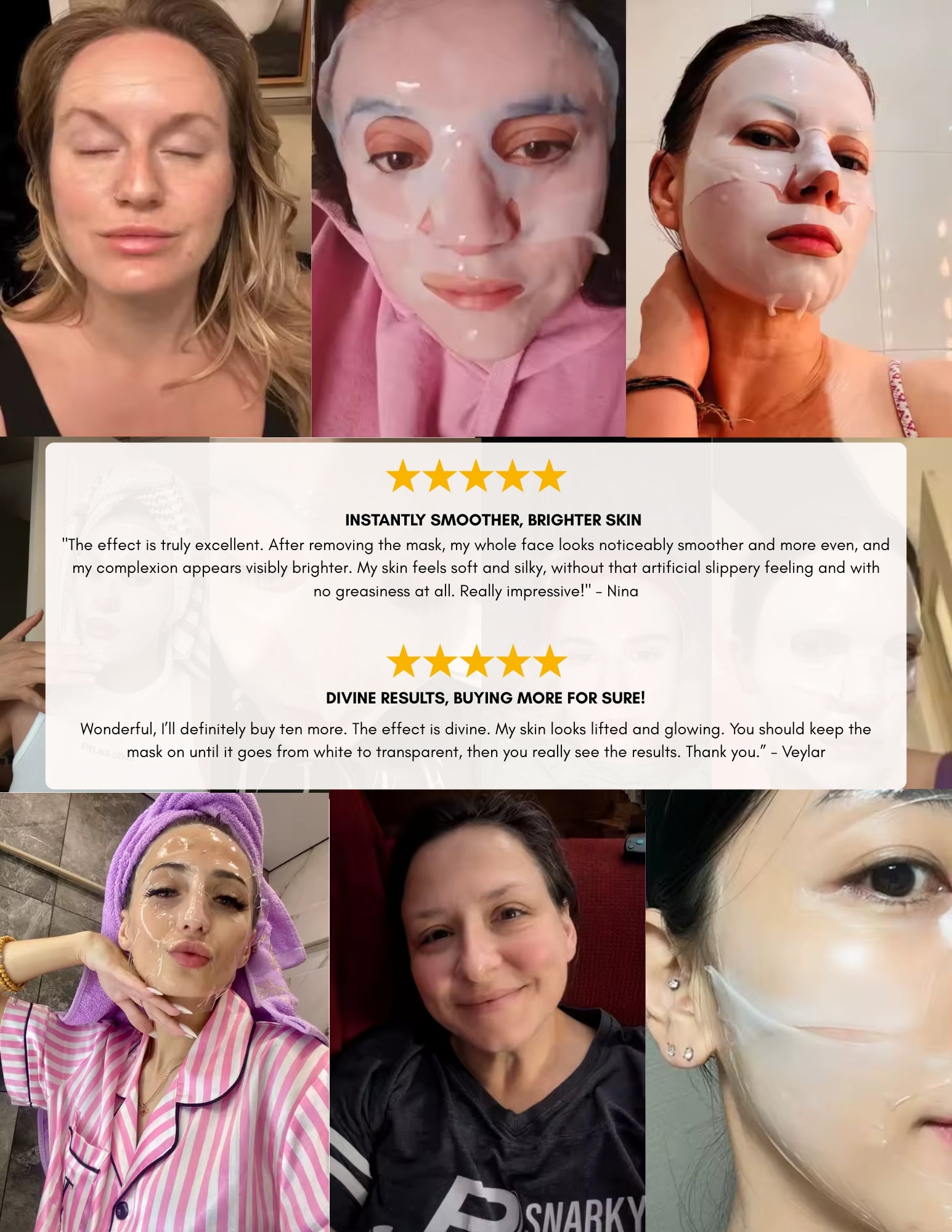 Transform tired, dull skin into radiant perfection. Our bio-collagen mask hydrates deeply while brightening and soothing for visibly glowing skin.